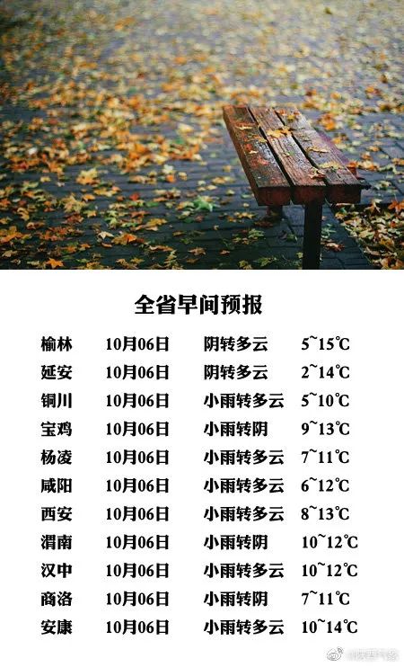 6日:全省多云间阴天,关中、陕南有小雨,关中南部、陕南北部局地有中雨。