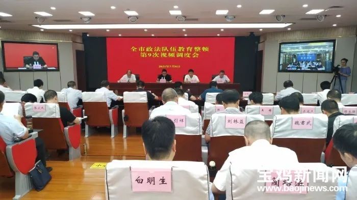 【宝鸡市政法队伍教育整顿视频调度会召开】7月8日,宝鸡市召开政法队伍教育整顿视频调度会,传达贯彻市委常委会会议精神,对开展“回头看”进行再安排再推进。