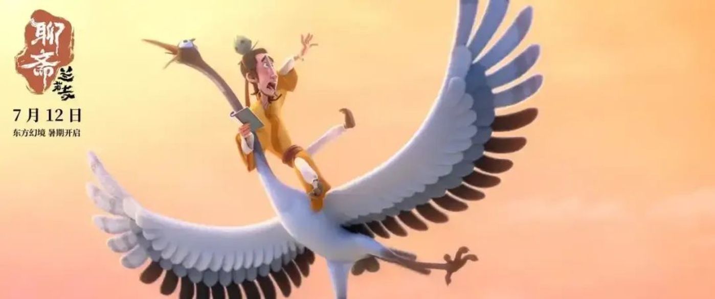不少学生观众在文娱价值官后台留言,多多关注《聊斋:兰若寺》的东方美学尤其是毛毡动画质感。根据“崂山道士”篇海报,可以看到身穿道袍的王承,骑在仙鹤身上,手持书卷,得意洋洋,海报呈现出独特的毛毡艺术风格,角色毛茸茸的憨萌感与滑稽神态相映成趣。