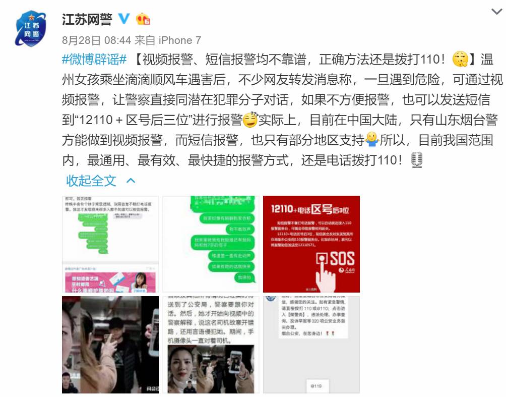 【传闻】自温州女孩乘坐网约车遇害事件后,一些声称“在特殊情况下可利用短信、微信、APP等方式报警”的文章在微信朋友圈中迅速流传。