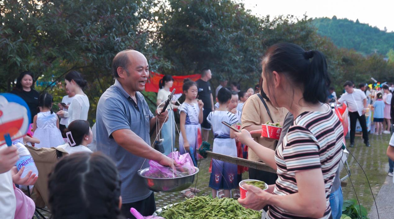“我是刷朋友圈看到活动消息,特意带孩子来吃最新鲜的毛豆、看烟花秀,比窝在家里玩手机强多了!”市民李女士一手牵着儿子,一手提着满满一筐刚采购的本地毛豆,笑容满面。“现在的乡村,不仅有美景,还有烟火气、文化味——这才是我们向往的‘诗和远方’。”