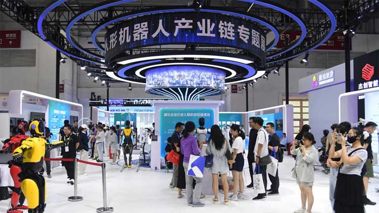 7月19日,几位参观者在数字科技链展区的TCL公司展台体验一款眼镜。当日,第三届中国国际供应链促进博览会迎来公众开放日。当日,第三届中国国际供应链促进博览会迎来公众开放日。