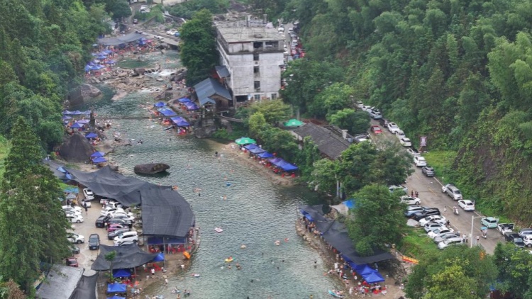 盛夏时节,广西柳州市融水苗族自治县各地清澈凉爽的瀑布、潭水、溪流吸引各地游客前来畅享夏日清凉,当地暑期旅游逐渐进入旺季,乡村“夏日经济”火热。盛夏时节,广西柳州市融水苗族自治县各地清澈凉爽的瀑布、潭水、溪流吸引各地游客前来畅享夏日清凉,当地暑期旅游逐渐进入旺季,乡村“夏日经济”火热。