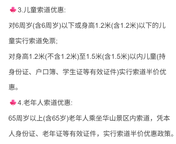 华山游客中心⇄北峰索道摆渡车票价:单程20元/人(淡旺季同价),车程20分钟左右;