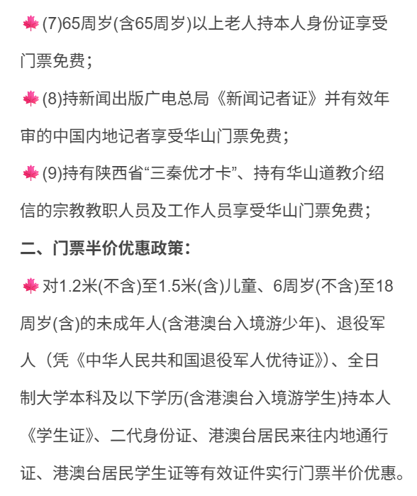 华山旺季门票160元/人,淡季门票100元/人,含华山主景区、玉泉院景区、仙峪景区、西岳庙景区四个景区的大门票。门票有效期2天(48小时),但每个景区仅可入园一次。