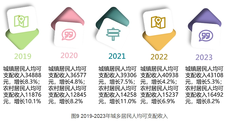 全年全体居民人均可支配收入31564元,增长6.4%。城镇居民人均可支配收入43108元,增长5.3%;农村居民人均可支配收入16492元,增长8.2%。全市城乡居民收入比为2.61:1,较上年缩小0.07个百分点。