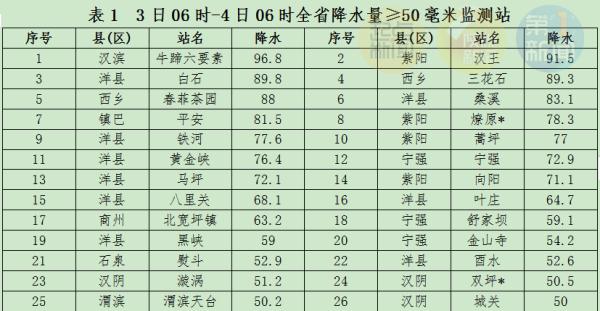 其中安康、汉中等地等降水量