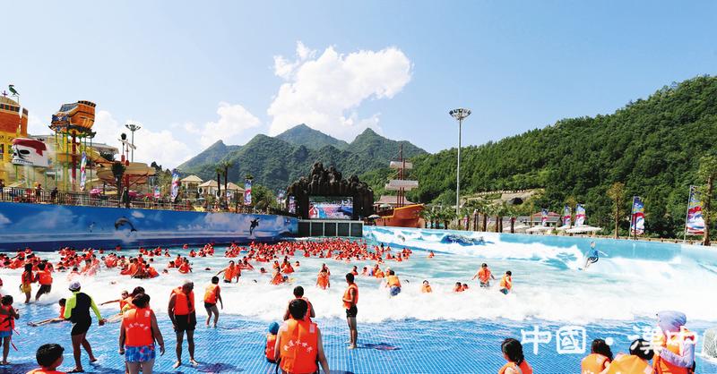留坝栈道水世界里,水花四溅,游客们在清凉的水中尽情嬉戏,畅玩各种水上项目。通讯员马瑞萍摄
