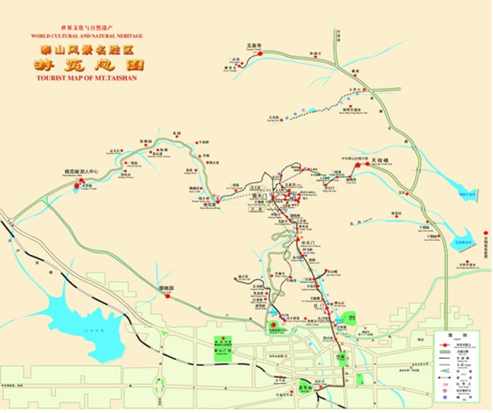 Mount Tai locates in the middle part of Shandong province spanning two cities (Tai’an city and Jinan city) with total area of 426 square kilometers. Mount Tai was called Daizong (means the principal mountain of China) in ancient time and then was renamed as Mount Tai in Spring and Autumn Dynasty went by the name of Dongyue (the Sacred Mountain of East China) that ranks No.1 among the five most important mountains in China. In 1987, Mount Tai was listed as Cultural and Natural World Heritage site and honored “World Geopark” in 2006. In China, Mount Tai is among the first group of “National Parks of China”, the state 5A-class tourist attraction, the top 10 best National Civilized Spot in China.