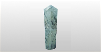The jade was bestowed by empress dowager in 36th year of reign of Qianlong which is 92.5cm long and 29.5cm wide composed of two parts. The upper part embossed three circles connected by curve separately representing sun, moon and stars and sea water and cliff on the lower part. Another part has intaglio of “Qian Long Nian Zhi” meaning produced in reign of Qianlong emperor. The jade is in cyan.