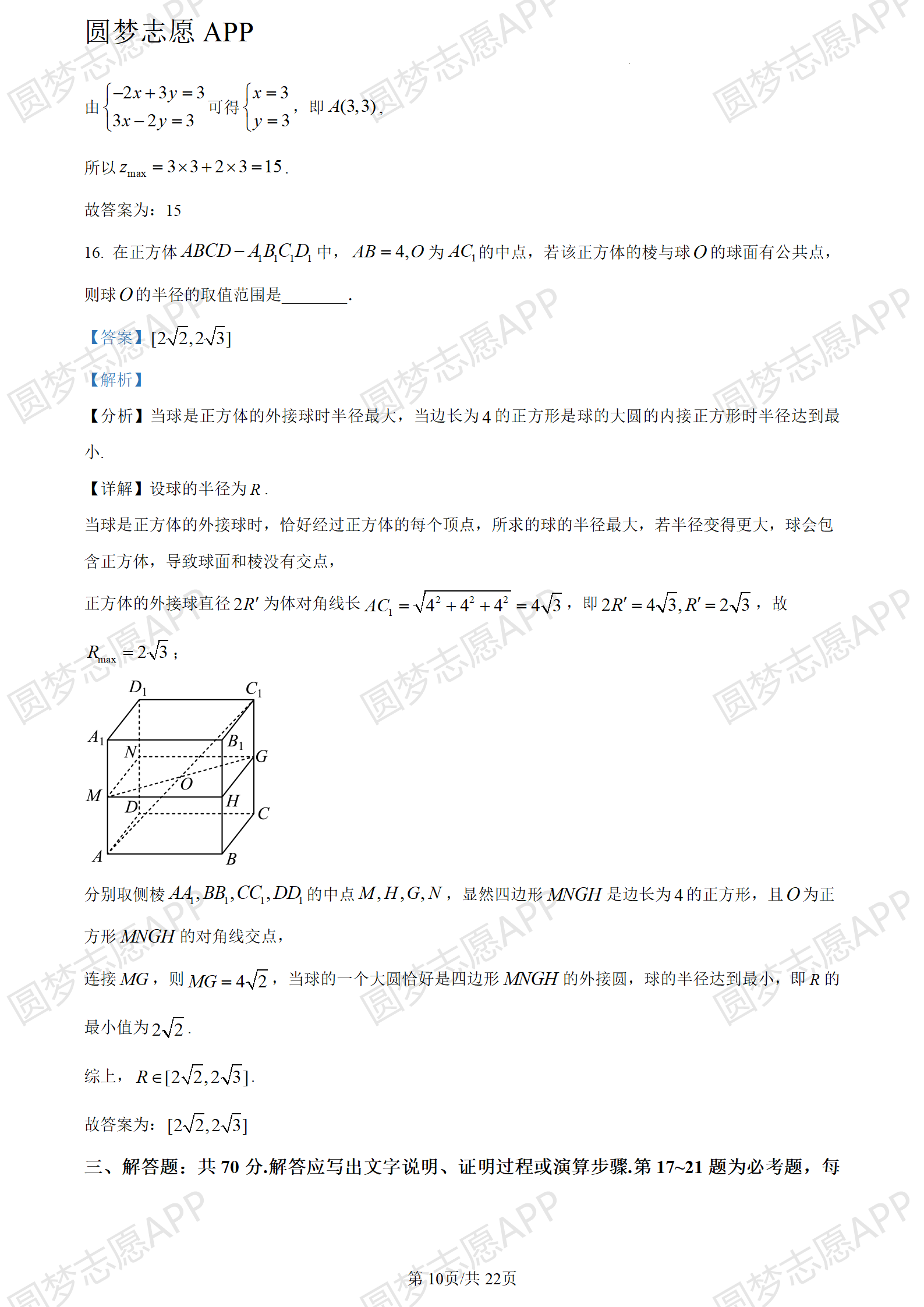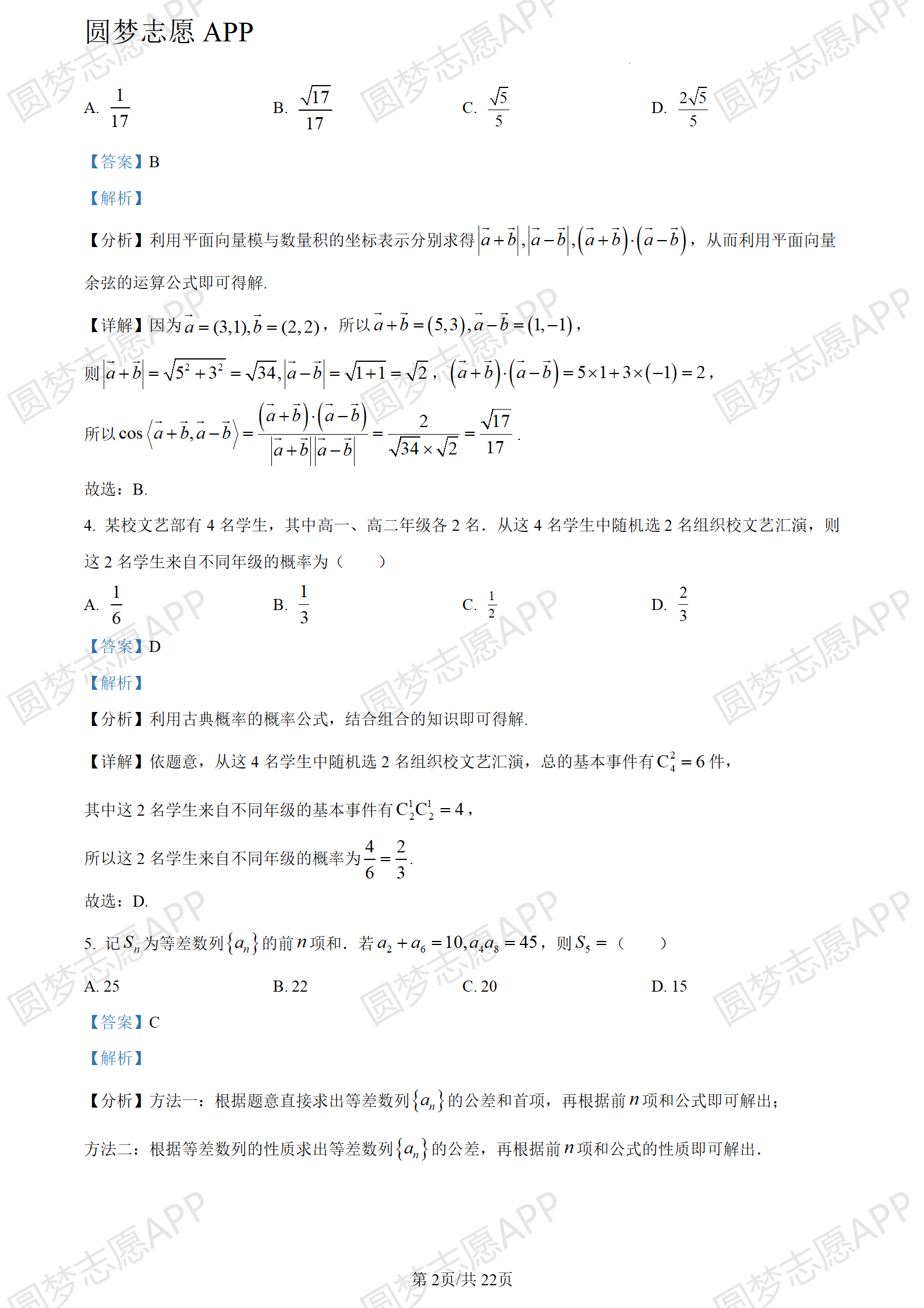 2023年全国甲卷数学真题及答案解析(文理科都有)
