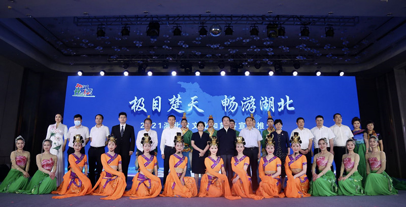 极目楚天 畅游湖北”2021湖北文化和旅游宣传推介活动5月15日在深圳举行。湖北宜昌、十堰、荆州、神农架林区4个地市以及4家景区、4家旅行社进行了现场推介。