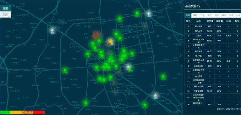 全面反映城区温湿度实况并预测未来24小时温湿度变化趋势,对人口密集区、重点源、敏感区进行小尺度预警,为污染源控制提供科学依据。