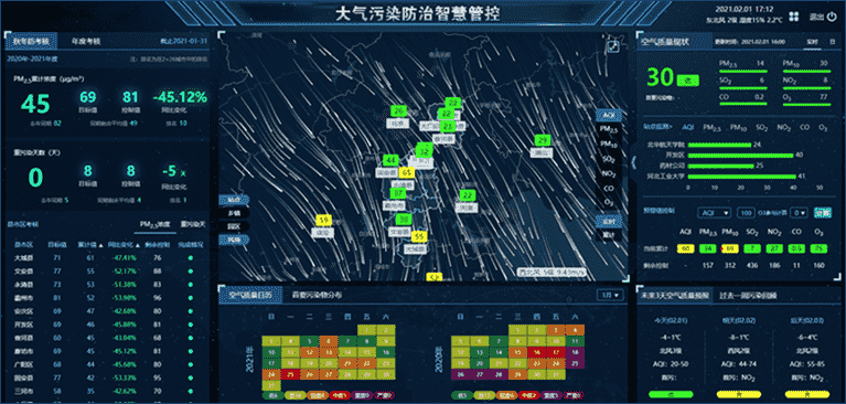 大气污染防治综合管控平台是为了更好的开展大气污染防治工作,是指挥调度、数据分析的核心工具。管控平台包含综合展示、空气质量调度地图、预警预报、数据统计分析等功能模块。 帮助大气污染防治工作科学有效地开展。