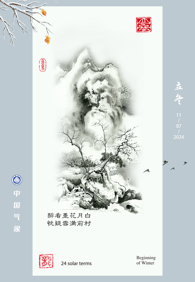 立冬三候为:一候水始冰;二候地始冻;三候雉入大水为蜃。