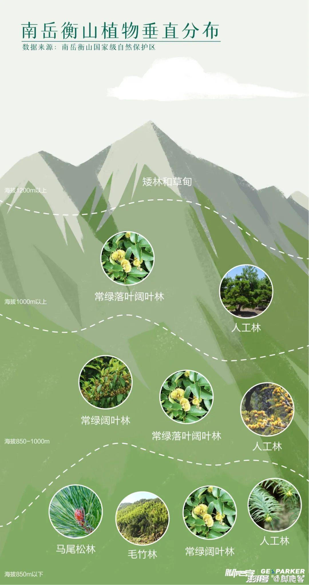 南岳衡山植物垂直分布示意图©脚爬客▲
