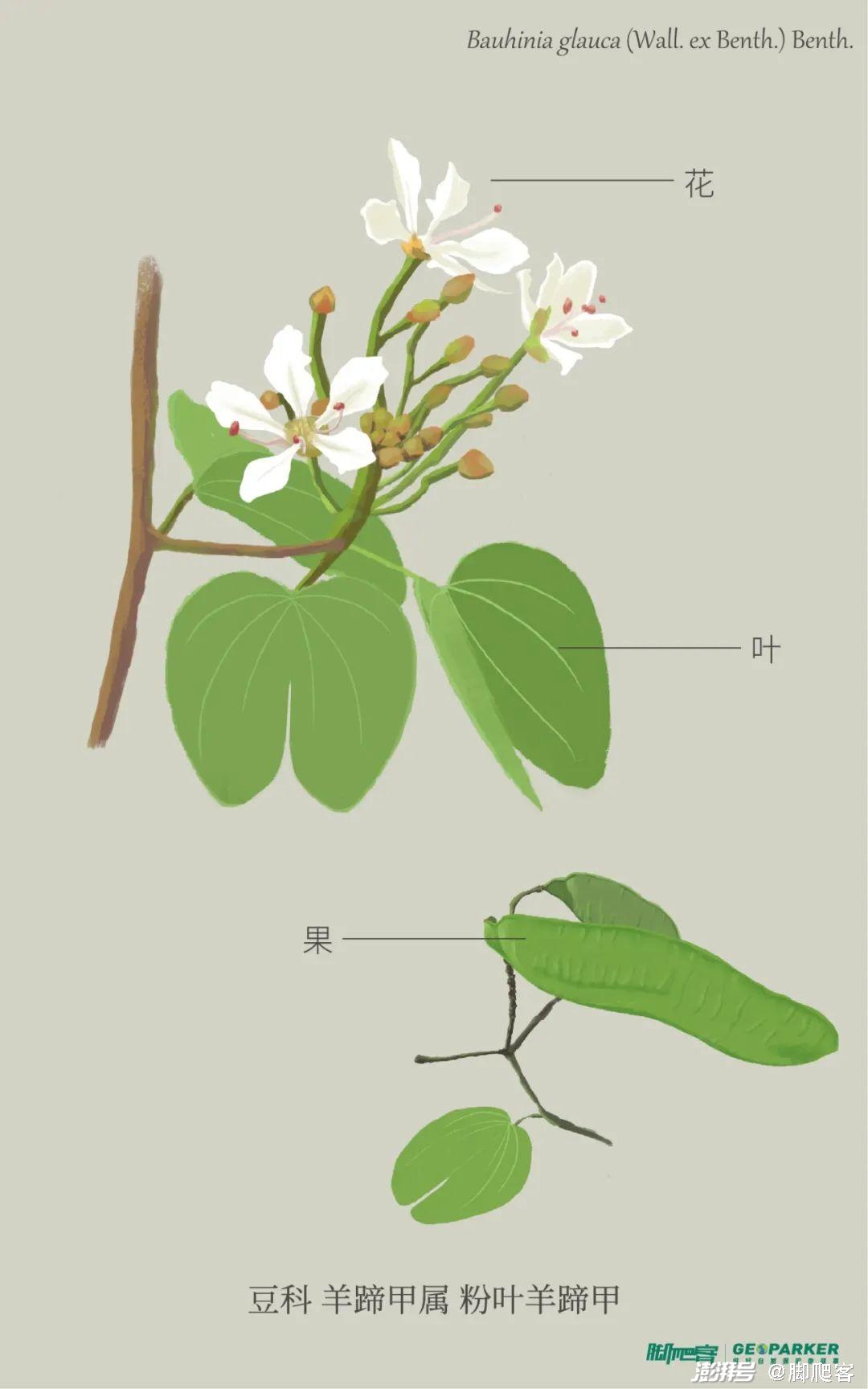 南岳植物粉叶羊蹄甲手绘©脚爬客▲