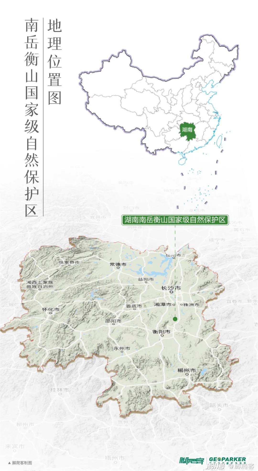 衡山,古时也称岣嵝山,南起回雁峰,北至岳麓山,层峦叠嶂八百里,七十二座高峰,延绵不绝,飞瀑流泉映照其间。湖南南岳衡山国家级自然保护区(简称“衡山”)位于湖南省衡阳市南岳区、衡山县、衡阳县交接地带的南岳衡山大岭,保护着衡山的自然资源。