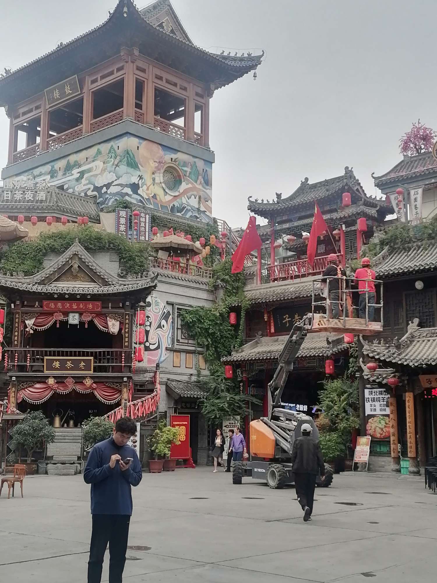 节前这里人不多,市场正在装饰布置挂国旗,过节放假这里就人山人海热闹了。。。。。。