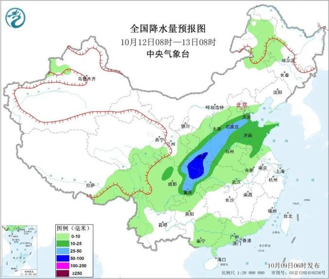 预计10月13至14日,华北、黄淮地区降水将自北向南陆续结束。受持续降雨影响,陕西、山西南部、四川盆地北部、甘肃南部等地有山洪、地质灾害或中小河流洪水气象风险,上述地区需警惕次生灾害的发生。