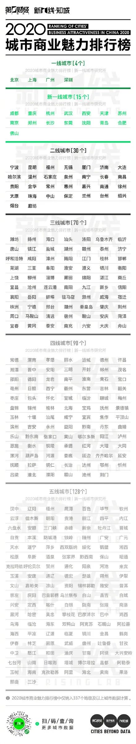2020年城市分级完整名单