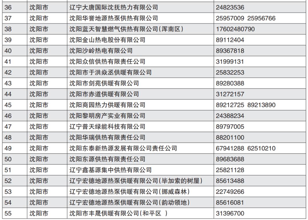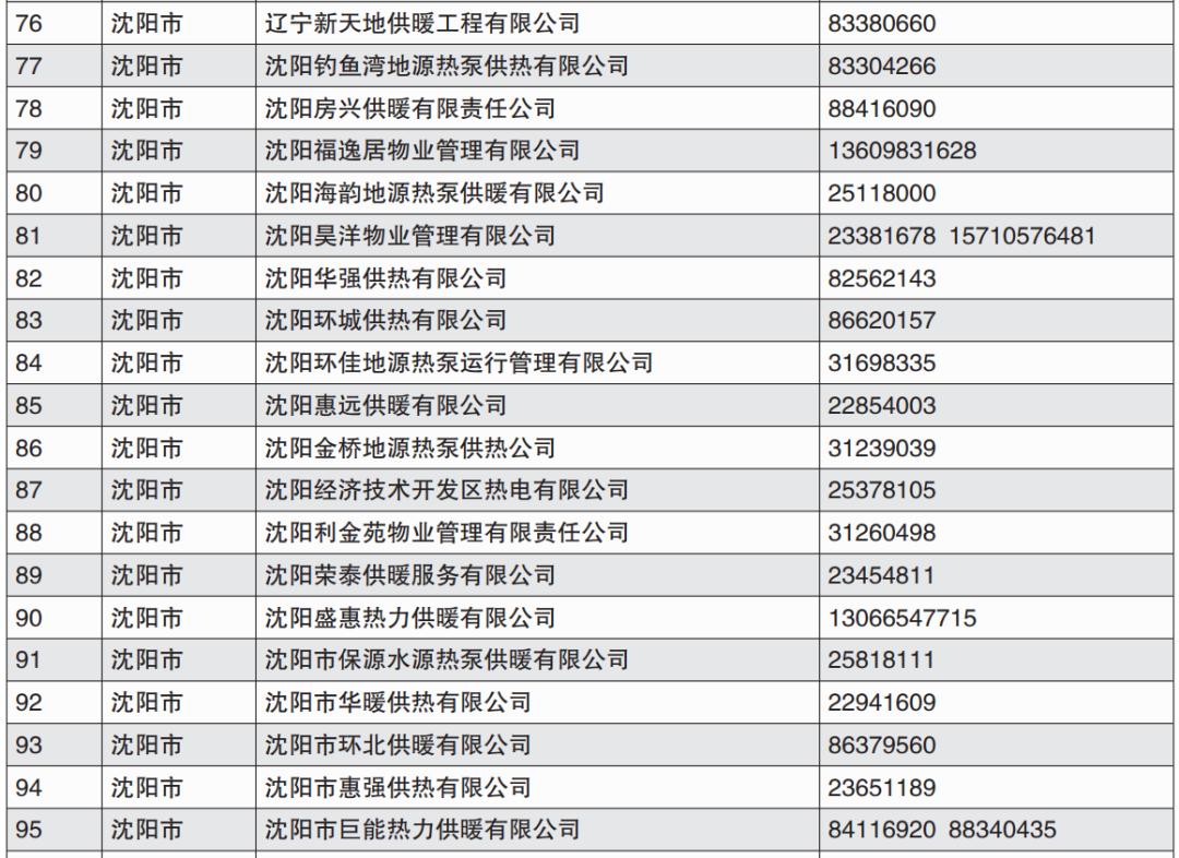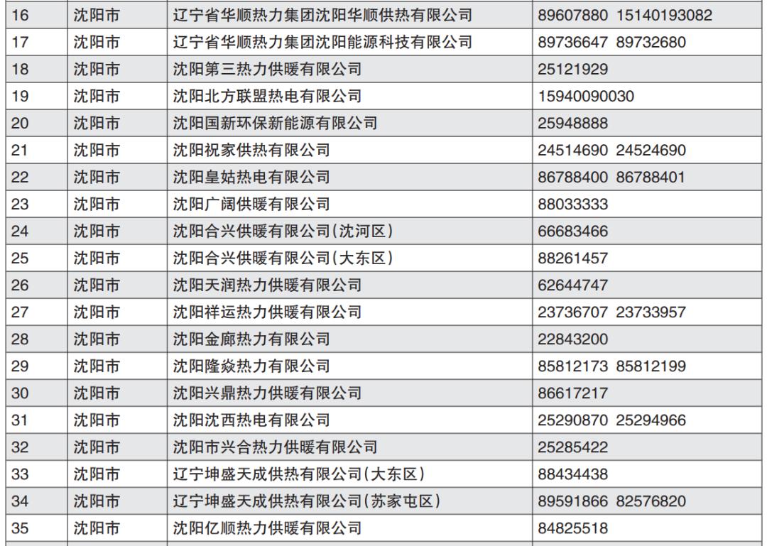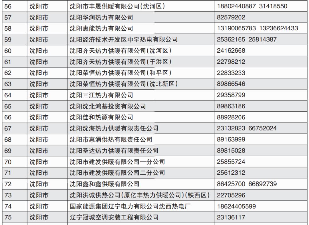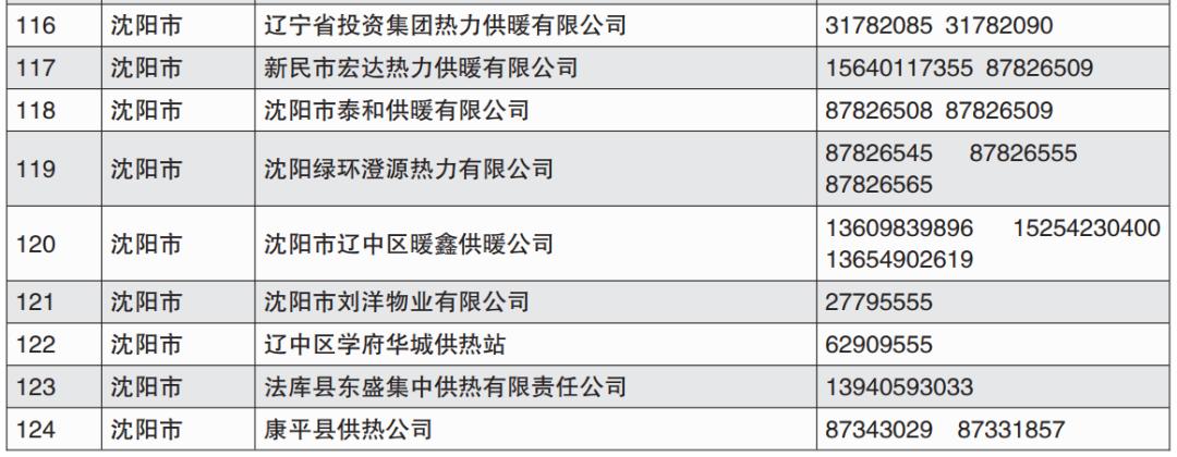 回复【供热】查看沈阳供热管理部门及供热单位公开服务电话