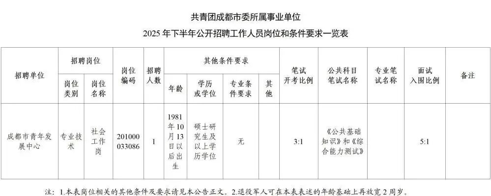 成都市消防救援支队面向社会公开招聘工作人员1名。