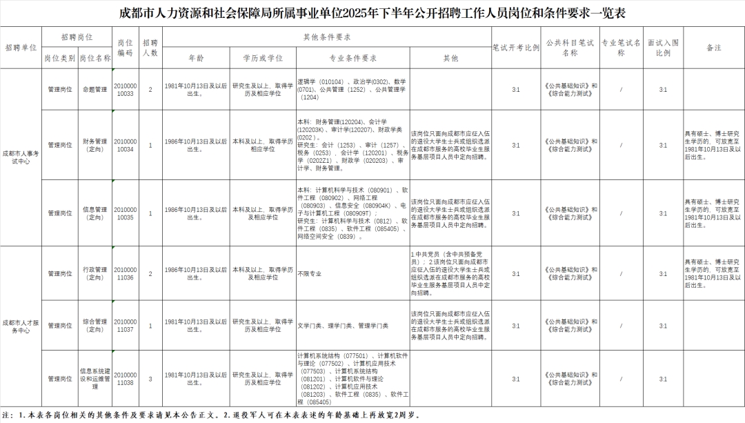 成都市人力资源和社会保障局所属成都市人才服务中心等2家单位面向社会公开招聘工作人员10名。
