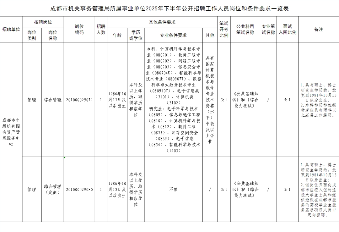 成都市机关事务管理局所属成都市市级机关国有资产管理服务中心面向社会公开招聘工作人员2名。
