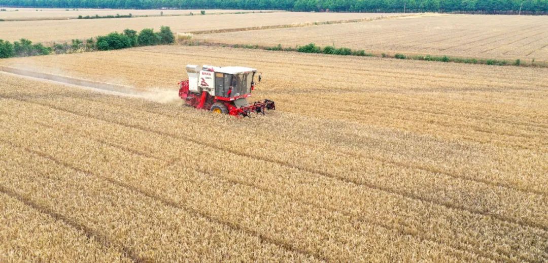 在河南省洛阳市瀍河区白马寺镇翟泉村,联合收割机在抢收小麦。新华社发(张怡熙 摄)