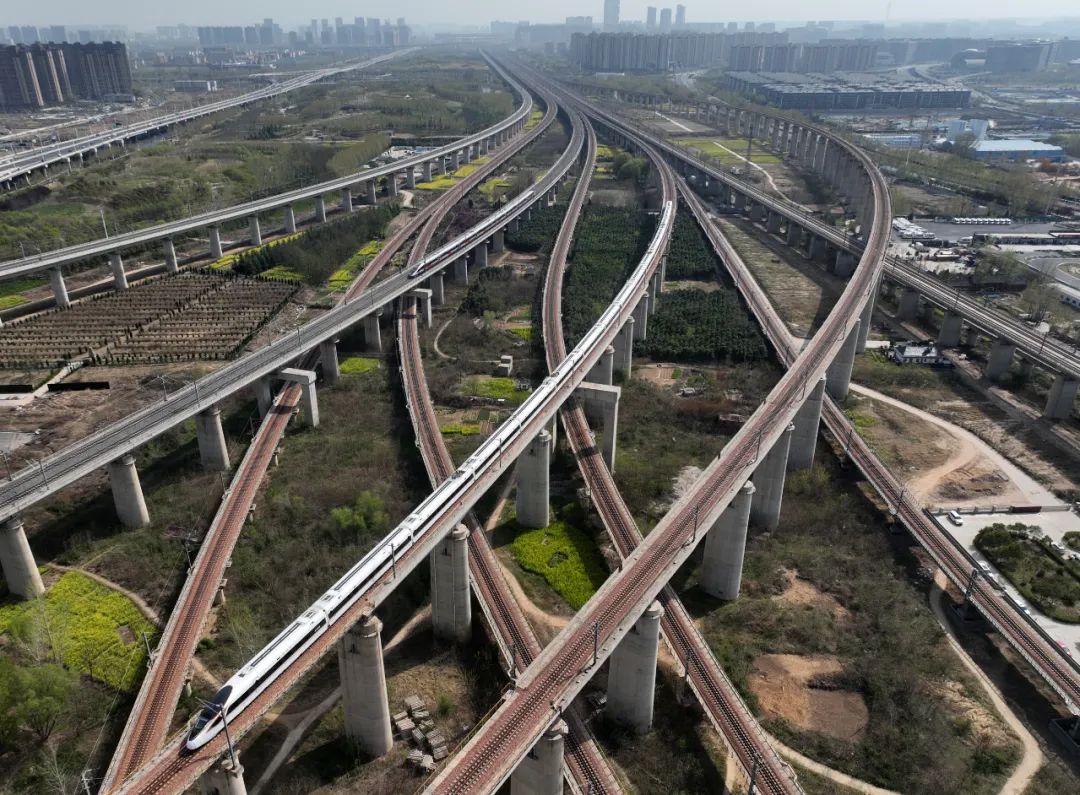 在河南省郑州市拍摄的纵横交错的高铁线路。 新华社记者 李嘉南 摄