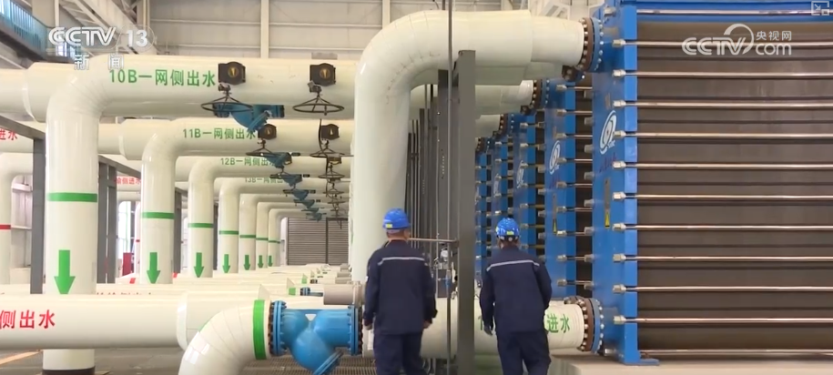 地热水从地下1500米抽上来,要先在这个地热能源站提取热量,再用这些热量加热自来水,然后把加热好的水通过管道送到居民家,实现供暖。工作人员现在正在监测的正是往百姓家送水的出水口温度,这个温度高低直接决定了居民家里暖不暖。