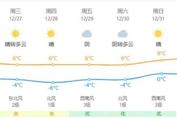 26日白天到夜间,晴转多云,偏南风转偏北风3级,气温5~-5℃。
