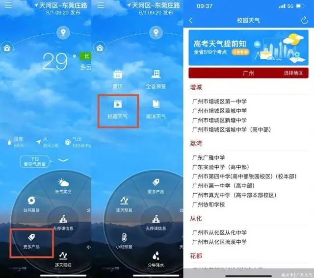 原标题:《@天河高考生:科目不同考场不同,别走错!考点天气一键获取→》