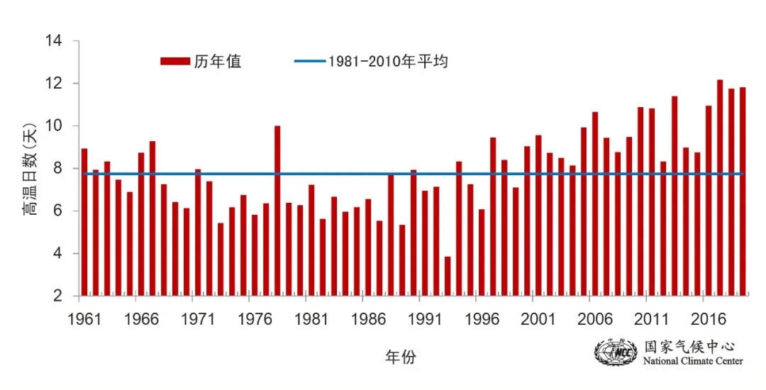 △1961年至2019年全国平均高温日数历年变化 图/国家气候中心
