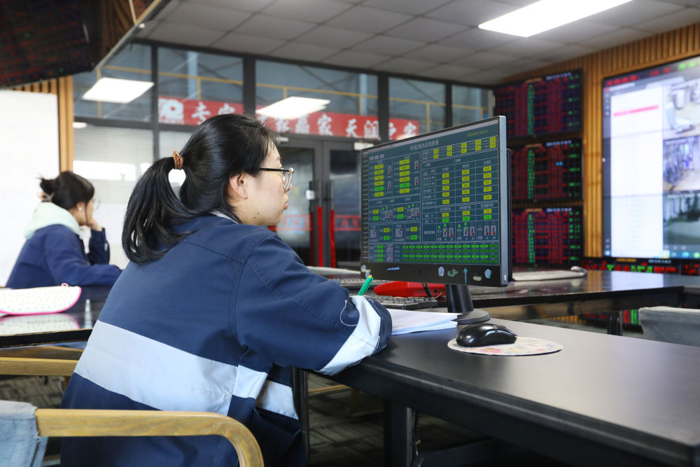 12月18日,沈阳天润热力供暖有限公司调度指挥中心的工作人员在监控换热站实时情况。新华社记者 陈为 摄
