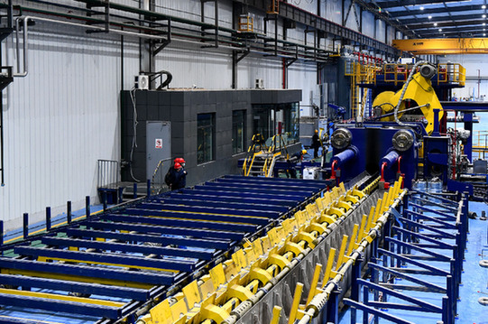 正值寒冬,宝钛股份线材厂里却是一派热火朝天的生产景象。150毫米粗的棒坯经过加热、轧制、拉拔、退火、表面处理等一系列工序后,成为直径仅有0.8毫米的盘丝。据宝钛股份线材厂党总支书记刘涛介绍,这是国内首条自主设计研发的钛及钛合金热连轧生产线,产品既有“大国重器”用棒材,也有日常生活中的外科植入物用高精度棒材,广泛应用于航空、航天、海洋、医疗、电子等领域。