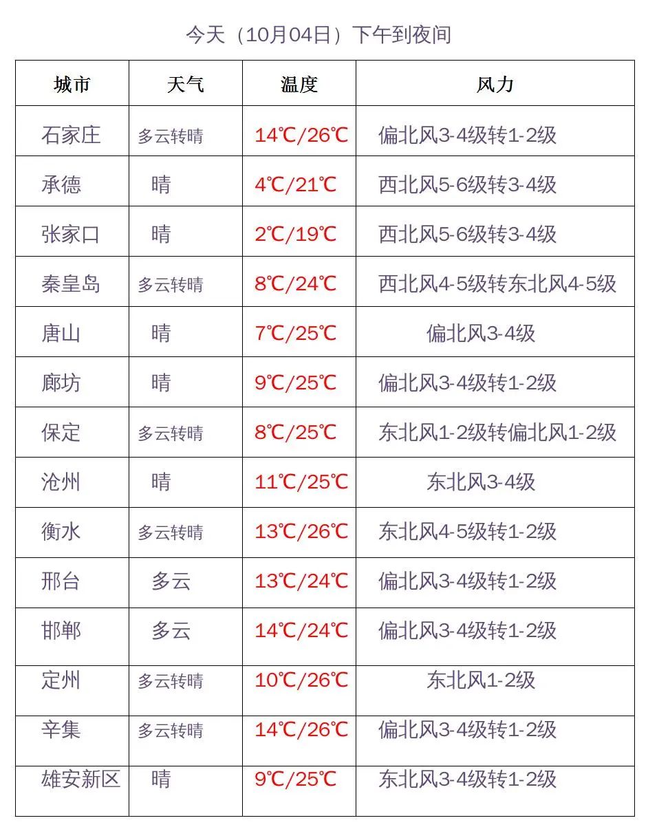 今天下午到夜间,石家庄、衡水及以南地区多云转晴,其他地区晴间多云。