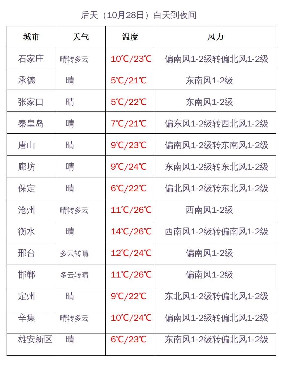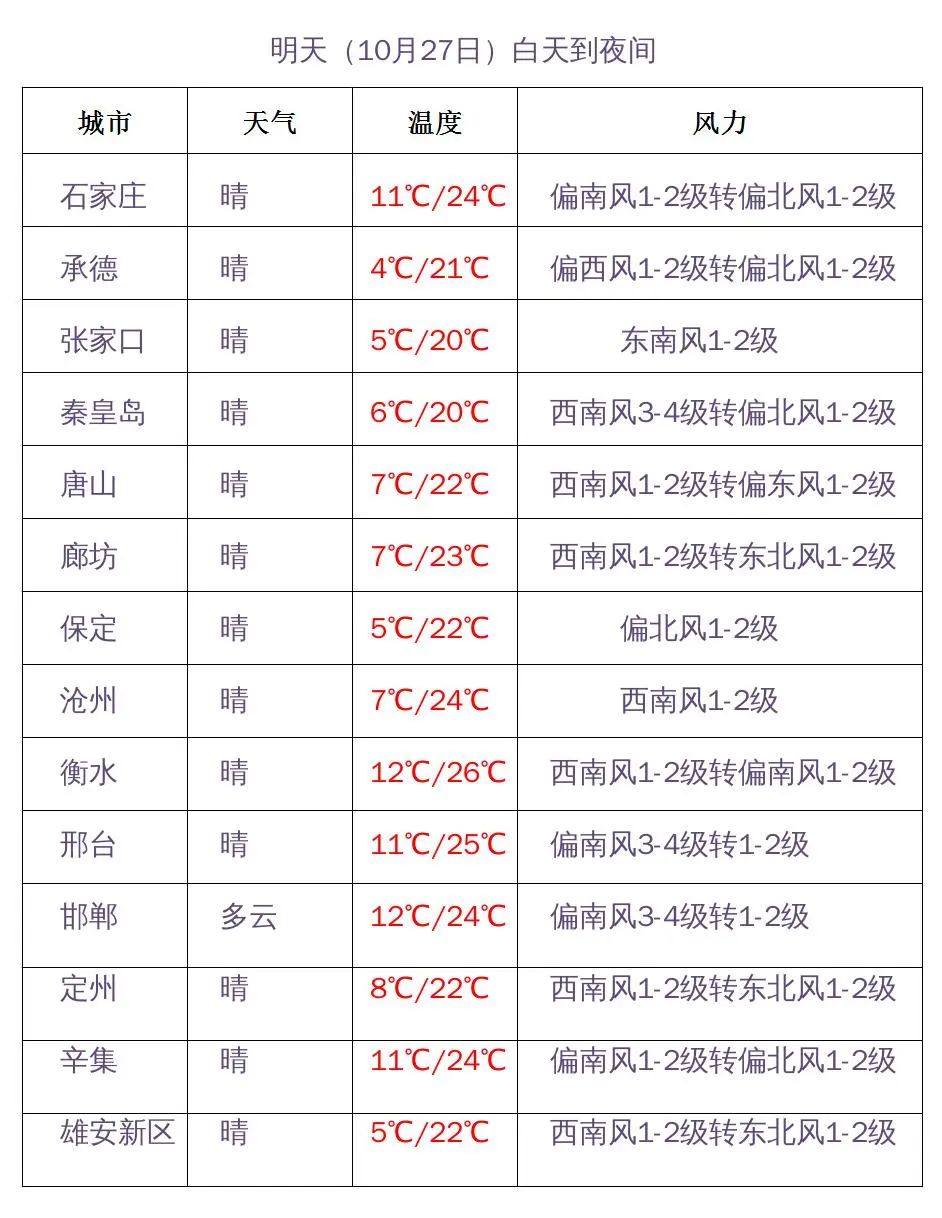 明天夜间到28日,邢台、邯郸晴转多云,其他地区晴间多云。