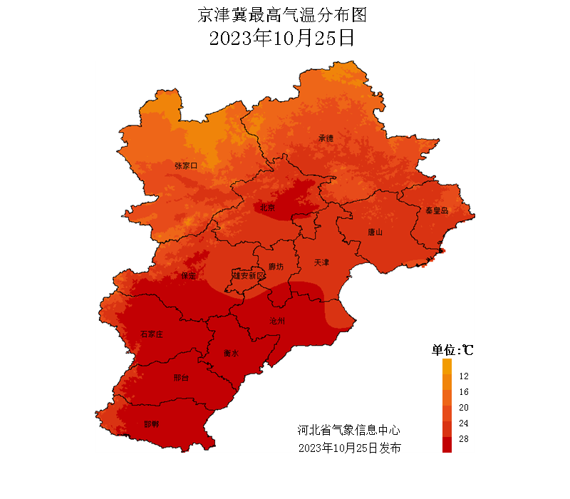 昨天(10月25日),秋阳高照,河北省暖意值拉满,中南大部28、29℃的气温比比皆是,保定、石家庄、邢台、邯郸、衡水的一些地方甚至突破30℃线,其中,邯郸的磁县以31.6℃领跑全省。除了咱们河北,北京、天津、山东、河南等地最高气温也直接冲上30℃,网友调侃称“这是北方的天然供暖”!