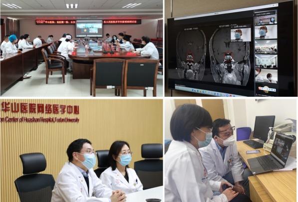 右上:复旦大学附属华山医院神经内科赵重波教授参加线上会诊。