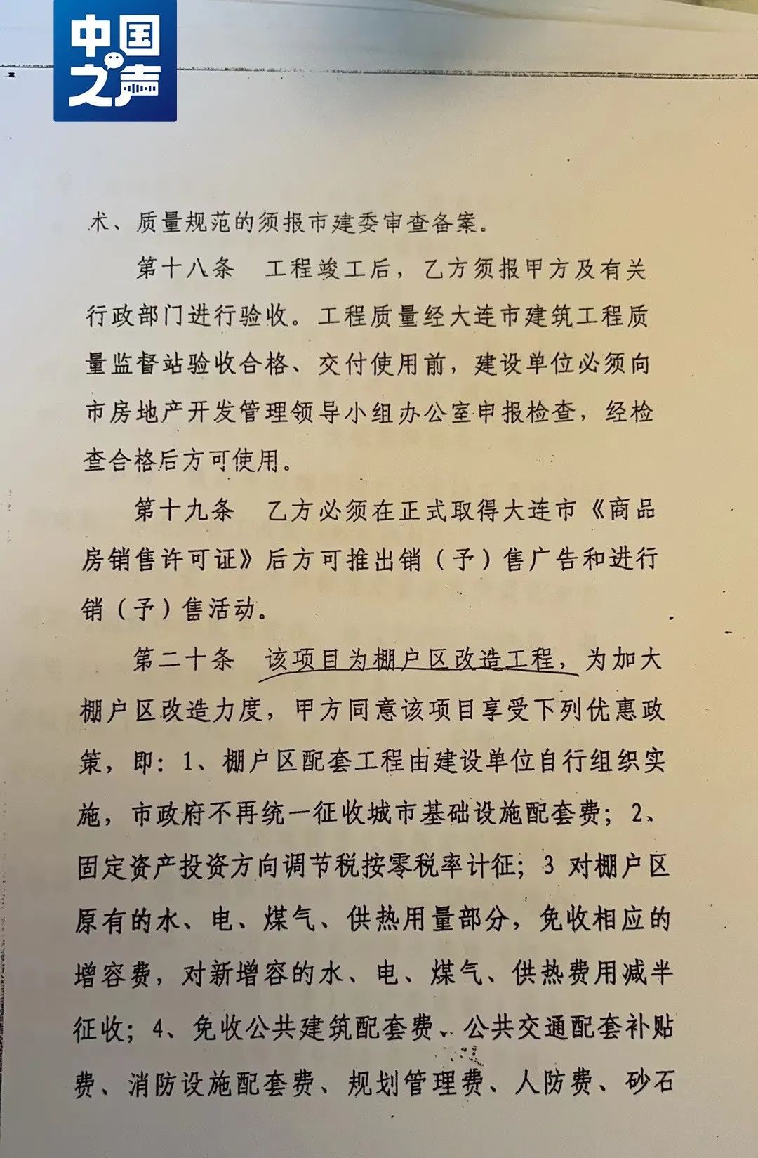 任国坤向记者出示了当年接手这一小区时,与政府部门签订的文件。该文件显示,该项目为棚户区改造工程,不再统一征收城市基础设施配套费,对棚户区原有的水、电用量,免收增容费,对新增容的水、电费用,减半征收。