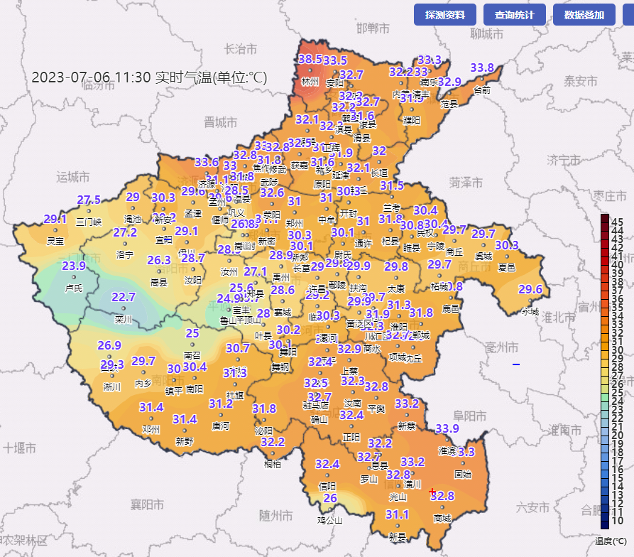 上午11时30分,仅林州超过了35℃