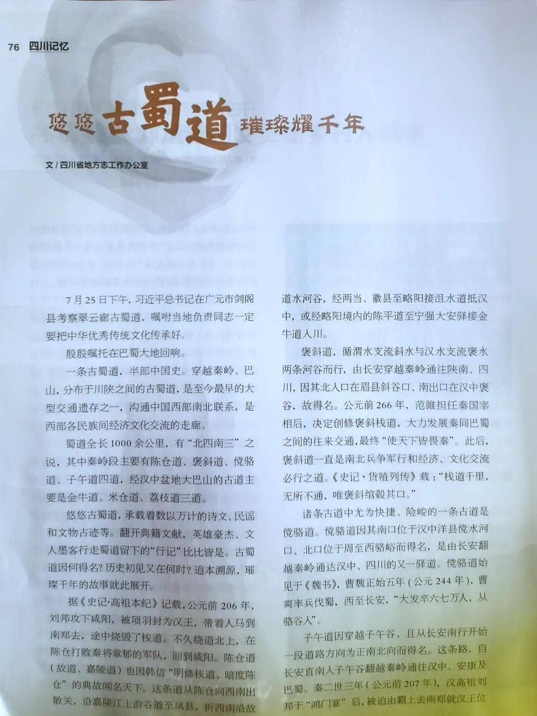 一条古蜀道,半部中国史。穿越秦岭、巴山,分布于川陕之间的古蜀道,是至今最早的大型交通遗存之一,沟通中国西部南北联系,是西部各民族间经济文化交流的走廊。