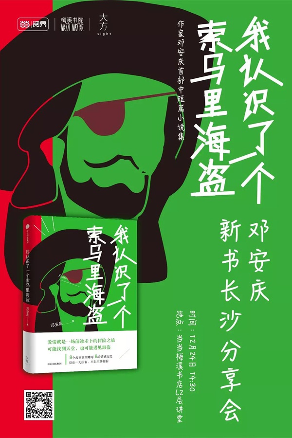 邓安庆擅长用非虚构的笔调书写虚构的故事,这让他笔下的故事非常真实又值得玩味。《我认识了一个索马里海盗》包含了作者八个创作于不同阶段的情感故事,没有惯常爱情小说中大起大落的叙述笔调,更多是对于青年人内心生活的剖析。12月24日,我们一起通过作者冷静、节制的叙事,感受文字中的悲伤与欢乐。