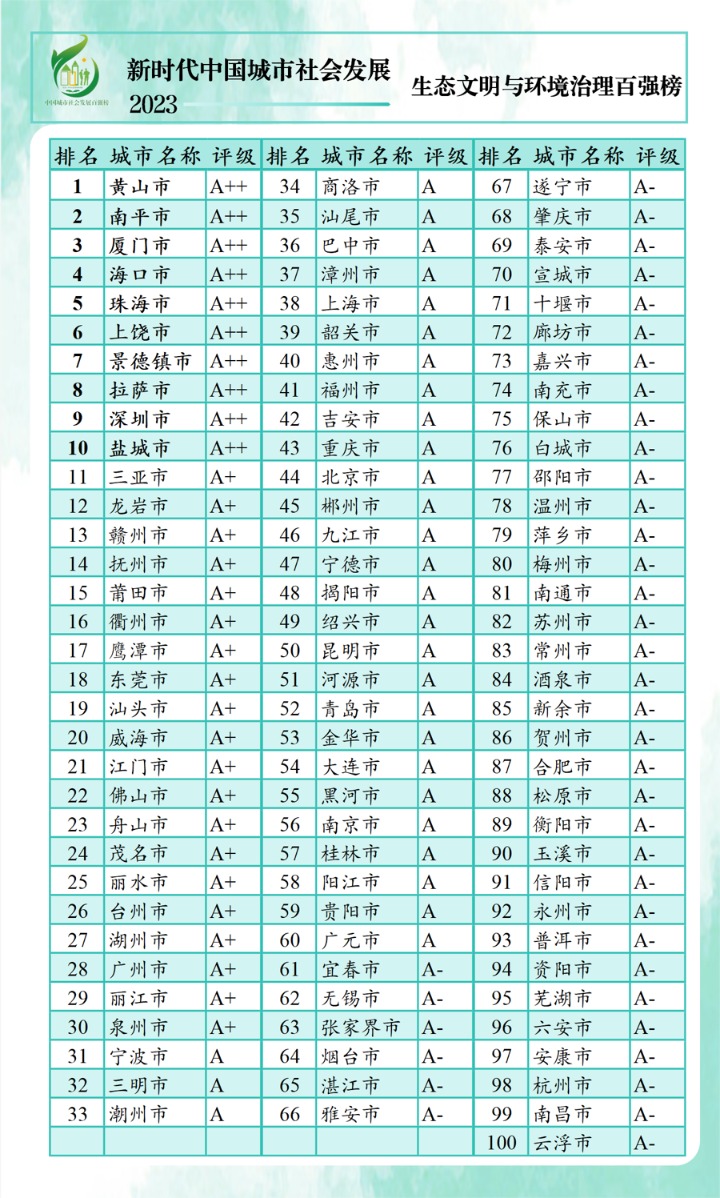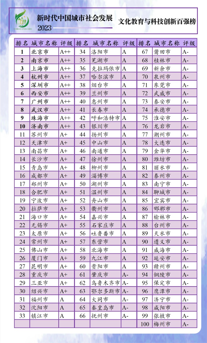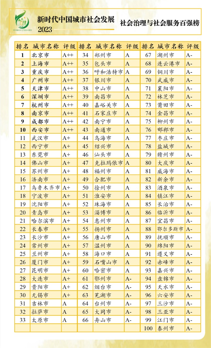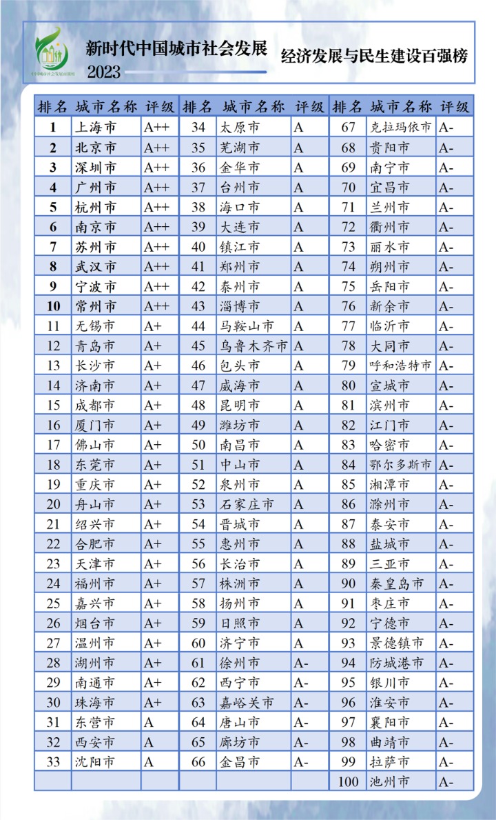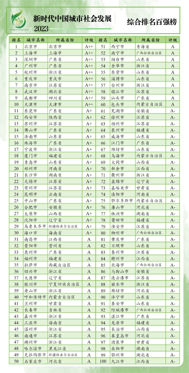 【新闻链接】新时代中国城市社会发展综合排名百强榜