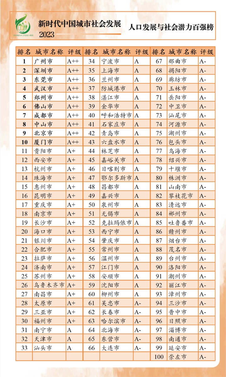 【上海一榜首、三榜眼,人口发展与社会潜力可提升】