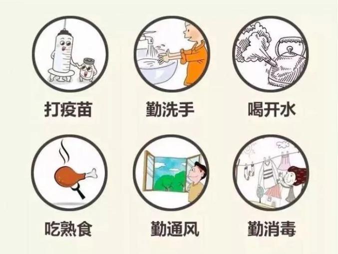 (2)养成良好的个人卫生习惯,饭前便后洗手、勤洗澡;不喝生水、吃生冷食物;不与他人共用毛巾或其他个人物品;掌握“六步洗手法”。