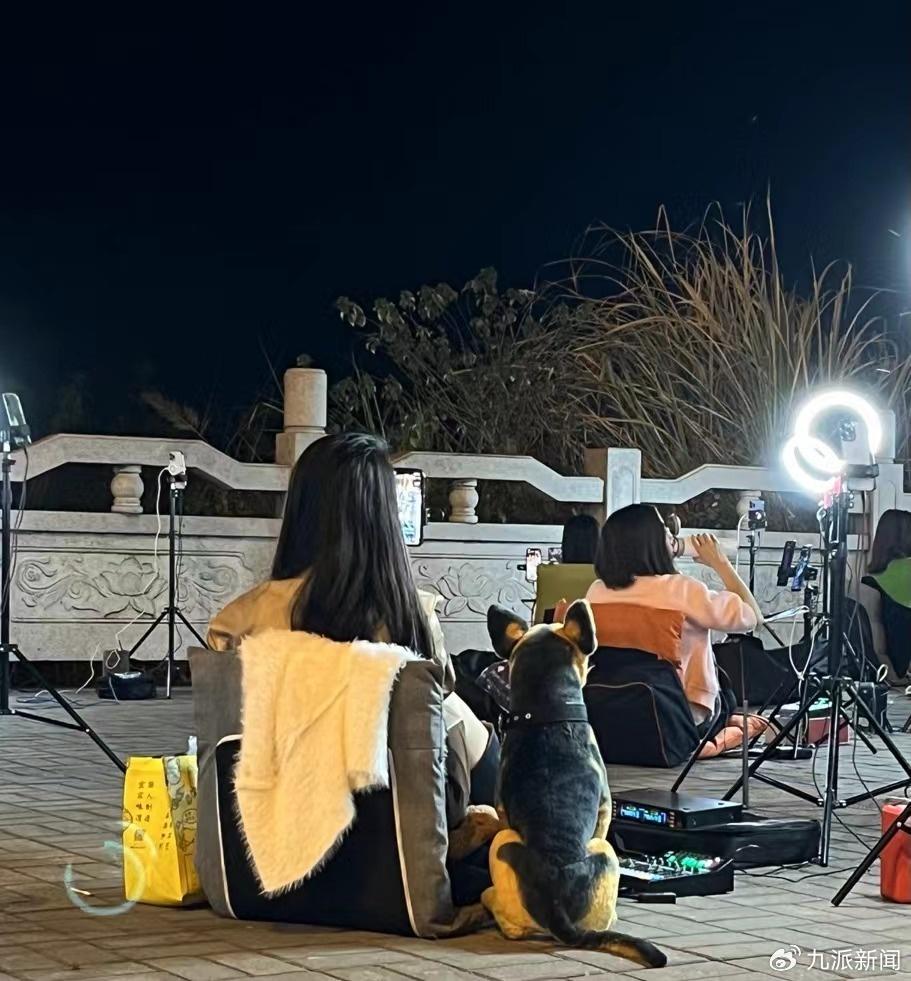 主播们聚集在桥头直播,席地而坐。图/九派新闻 李倩