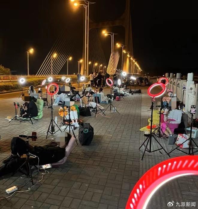 桥上偶有少年三五成群,骑着电动车疾驰而过,用嬉笑腔调冲着主播们喊:“嘿,哟哟~乞丐,网络乞丐。”